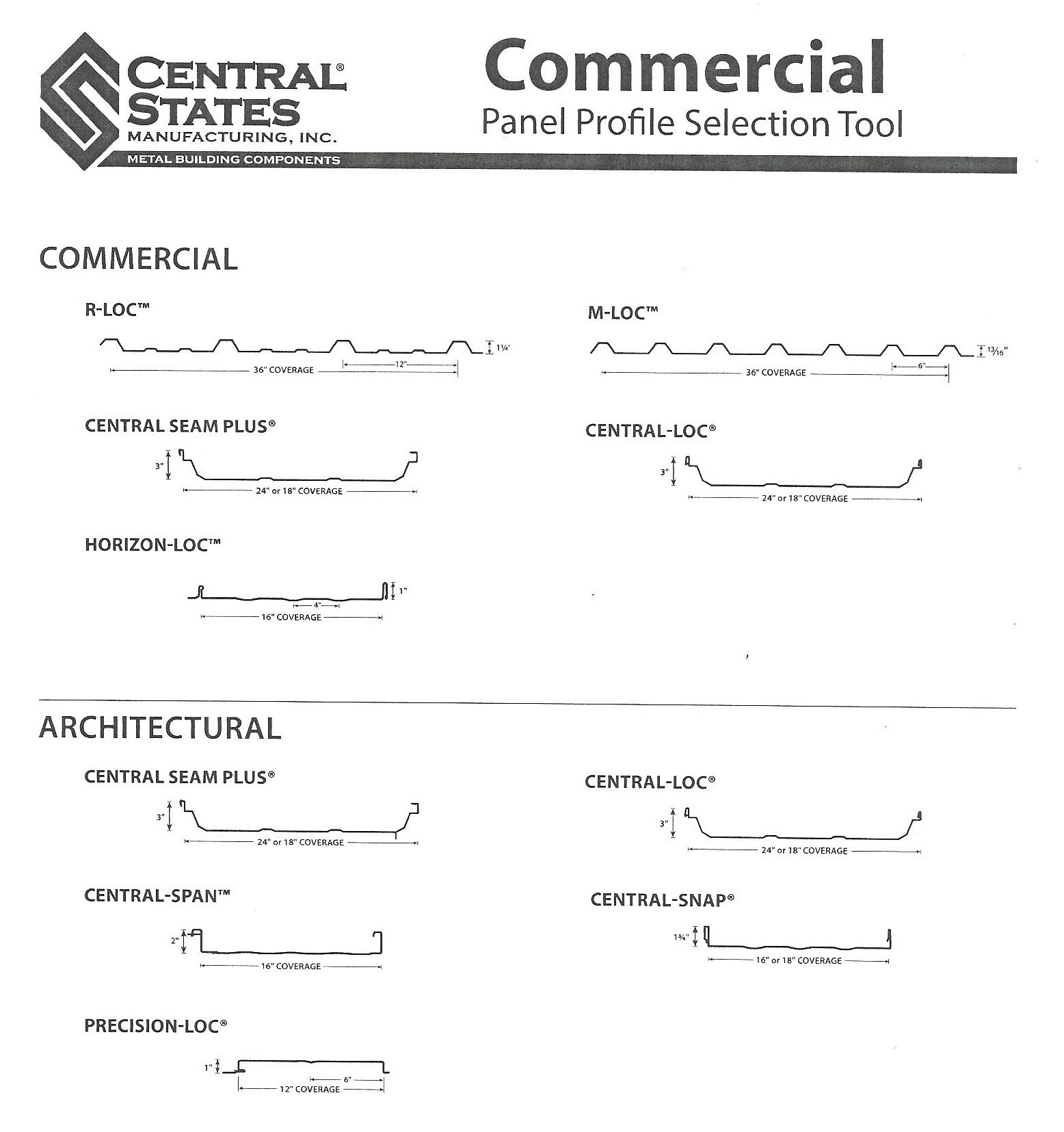 Metal Roofing Panel-Loc Plus from Central States is our most commonly sold profile, but we are able to get a wide variety of metals.